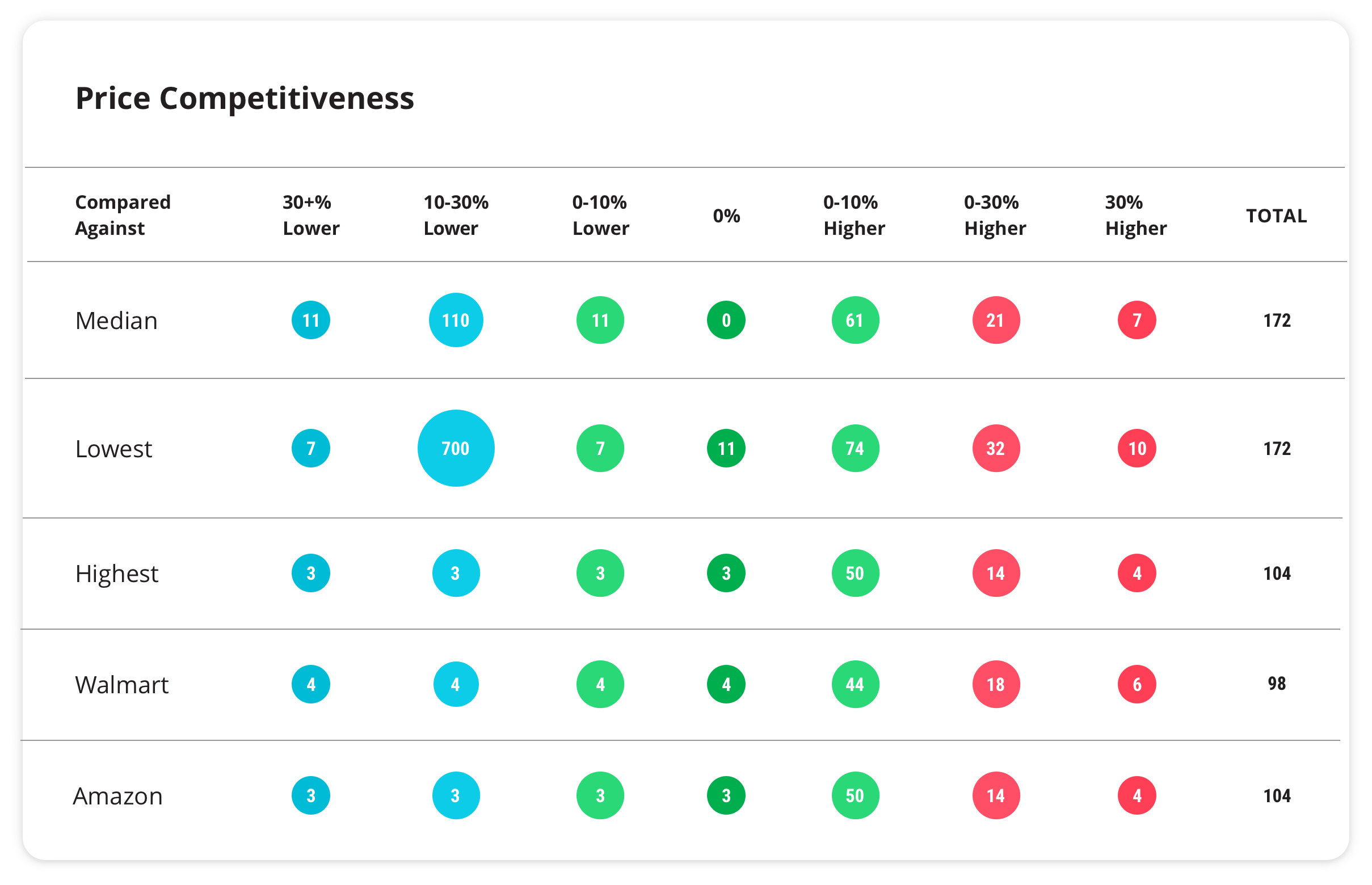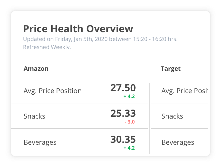 • Stay ahead of market shifts by configuring alerts that monitor price fluctuations for critical SKUs, categories, or brands.