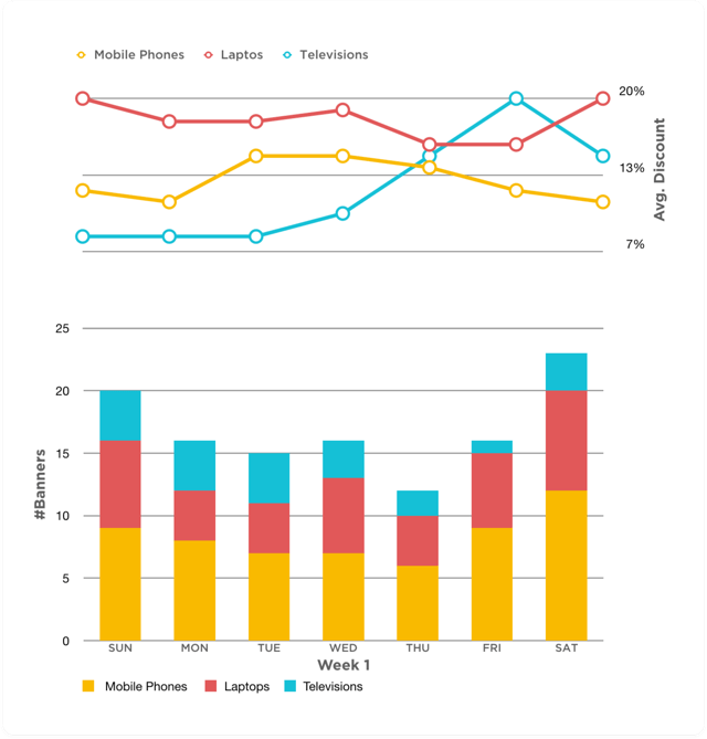 Spot and seize opportunities to sell. Gain near-real-time insights on the brands, categories and products your rivals promote, including discounts and campaign frequency and duration.