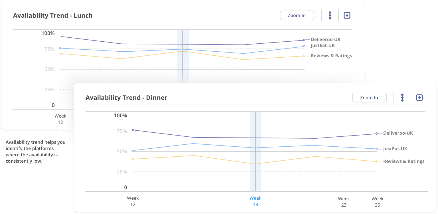 Optimize all your organic attributes – Availability, Rating, ETAs, Fees, Pricing for every Zipcode for maximum visibility at Lunch and Dinner slots.Improve ROI of marketing ad spend with recommendations to choose right banners and deals.